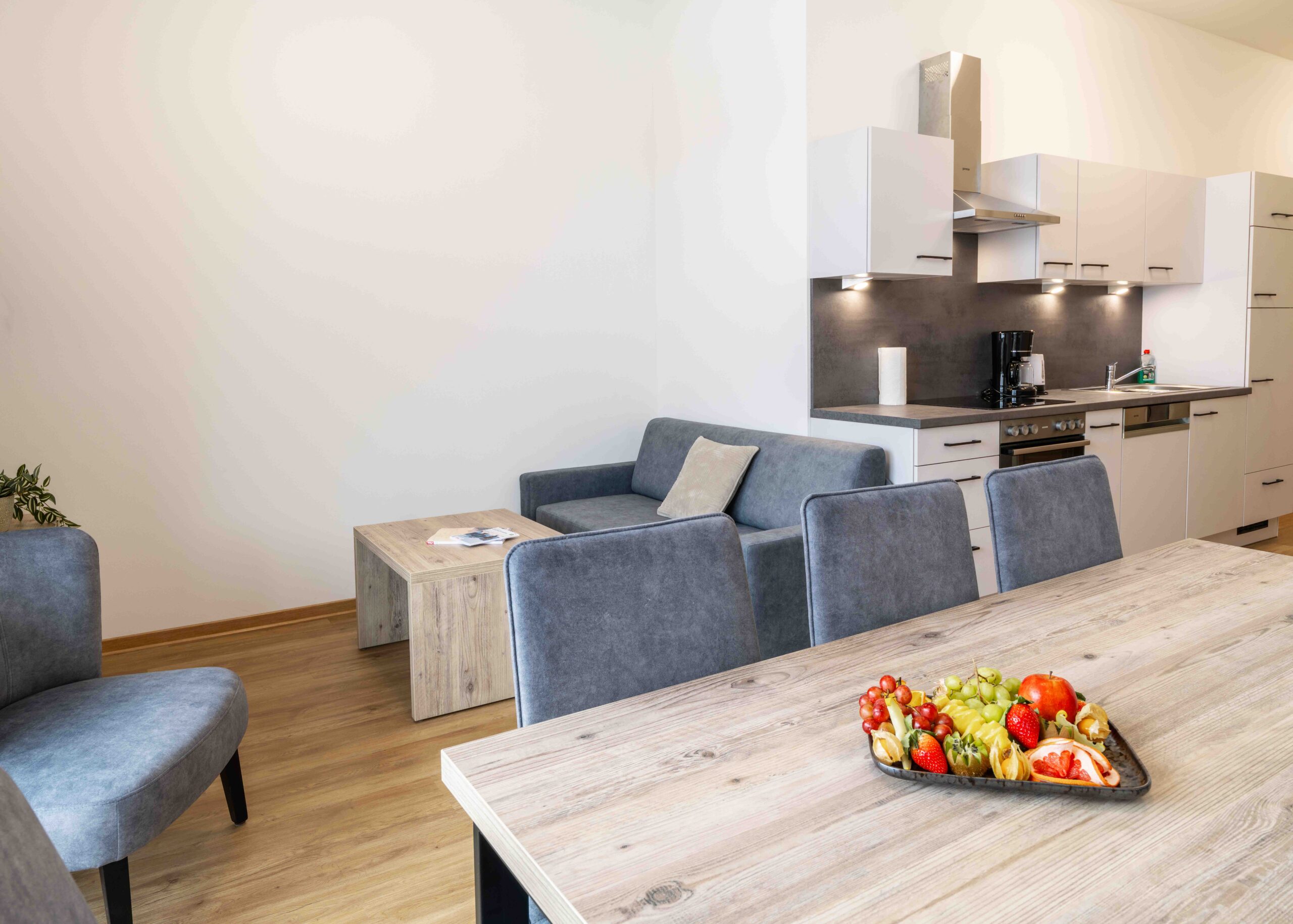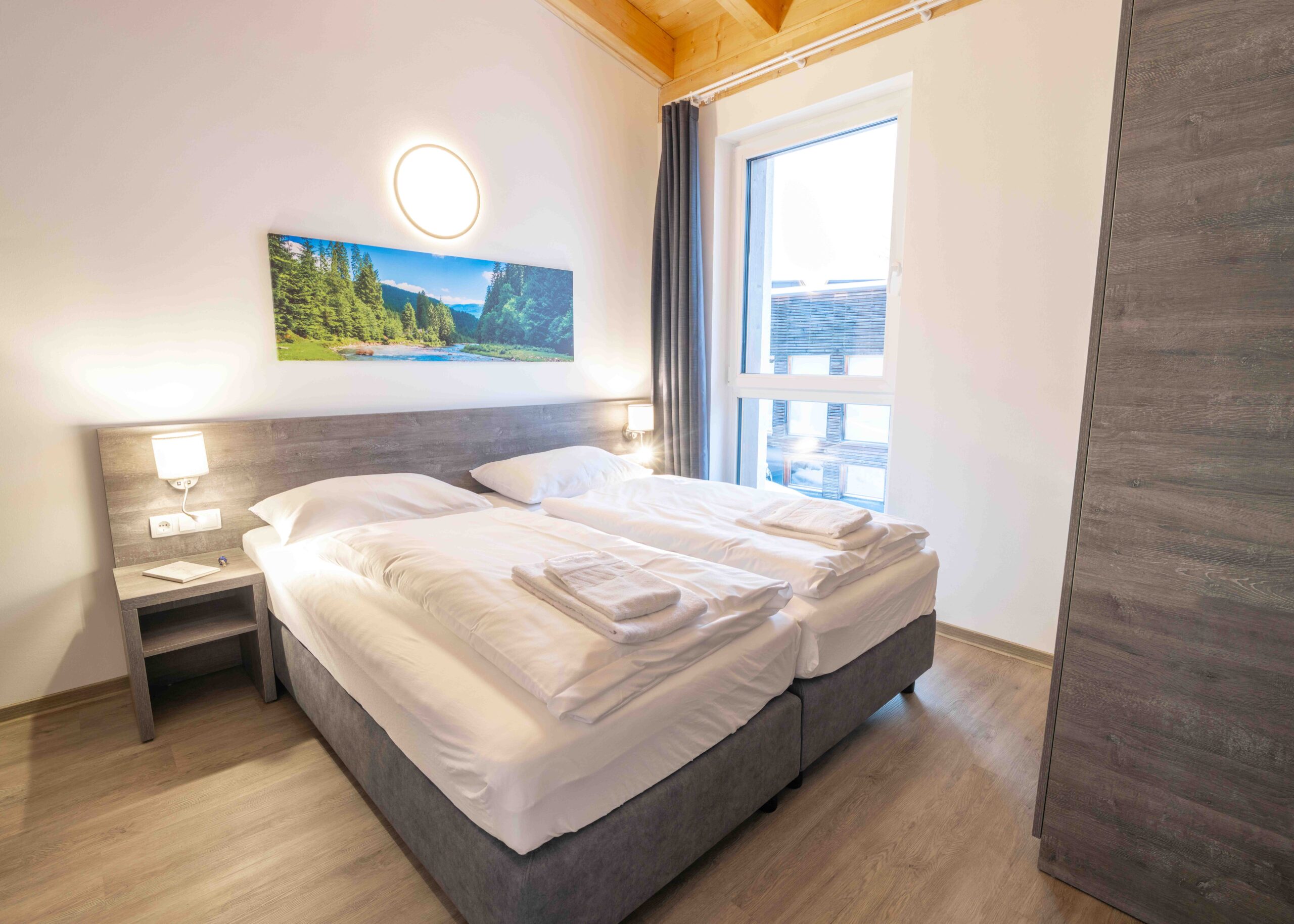 Unser Superior Apartment besteht aus 2 Schlafzimmern, jedes mit einem Doppelbett und einem zusätzlichen Extra-Bett, sowie einem eigenen Bad. Das gemütliche Wohn-Esszimmer bietet ausreichend Platz für die ganze Familie, eine komplett ausgestattete Küche macht das Angebot komplett.