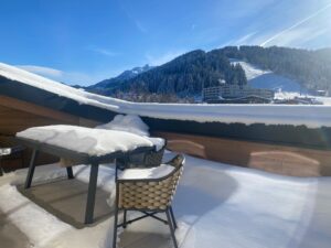 Das Apartment verfügt außerdem über 3 Schlafzimmer, alle mit eigenem Bad, und eine sehr schöne Terrasse mit Blick auf die Pisten.